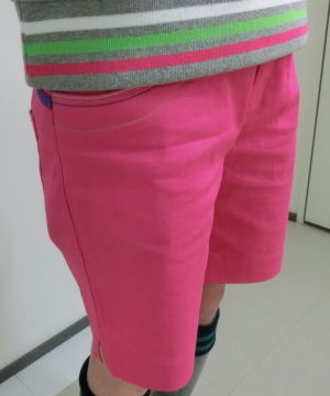 動きやすさを重点にコーデしました。でも目立ちたい精神だけは忘れずに派手め???なピンク。ボトム、上着にもワンポイントのピンクをコーディネイトしてみました。意外とイケてると思いますがどうですか?