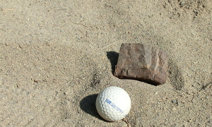 本来、バンカー内の自然物は取り除くことができませんが、石や松ぼっくりなどが球に近く、そのまま打つことで自分や他のプレーヤーに危険が及ぶ可能性がある場合、無罰で取り除くことができます。